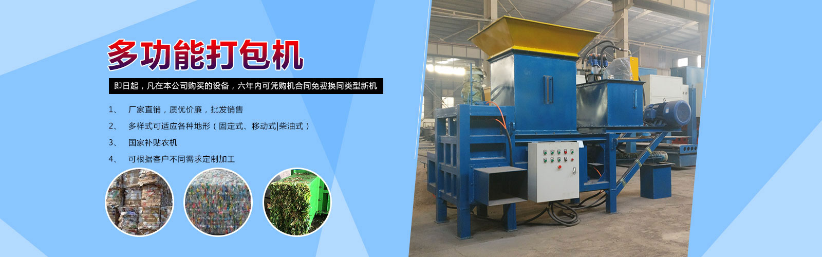 | 1、擁有50000平方米的倉儲中心和8000噸的現(xiàn)貨資源規(guī)格齊全 2、主營產(chǎn)品有農(nóng)機設備,打包機,廢舊金屬處理設備,木材處理設備 ,先后出口到英國、俄羅斯、瑞典、馬來西亞、越南等30多個國家和地區(qū) |